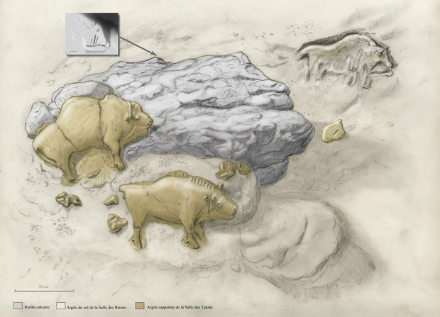 Figure 11 : Réseau Supérieur : les Bisons d'Argile et leur environnement proche (doc. G. Tosello - Assoc. L. Bégouën).
