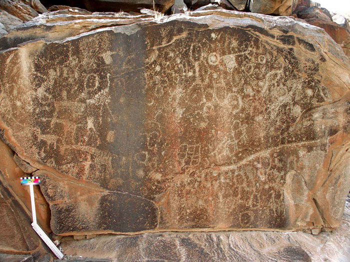 Figure 12. Only in a very small and clearly restricted area at the western foot of the Daureb one can find engravings which in some places are found superimposed by paintings.