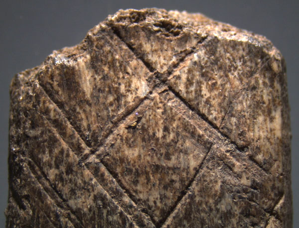 Stries formant un quadrillage sur biseau en bois de renne (cl. L.Aurière / MHN Victor Brun Montauban).