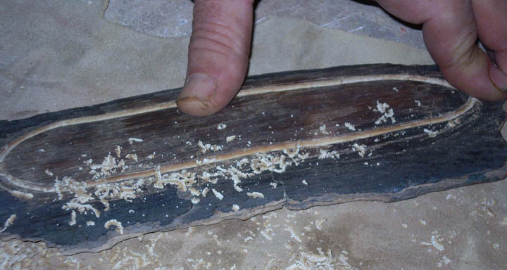 Rainurage pour obtention d'un support (Ivoire / cl. L. Aurière).