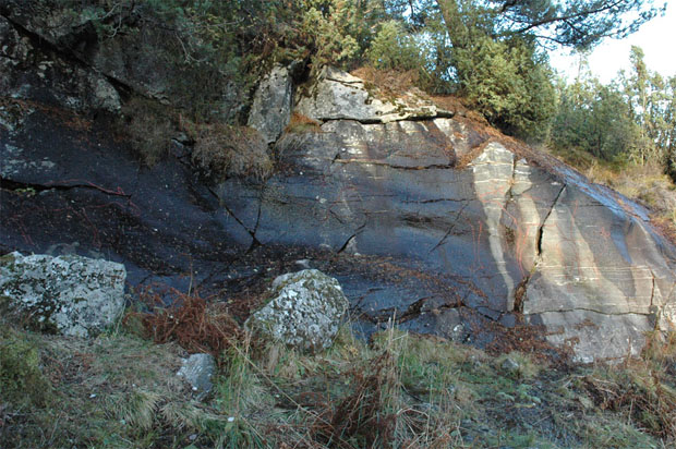 Scandinavie![]() Figure 4 : Photo du panneau de Stykket (Trøndelag, Norvège) avec superposition du relevé infographique (M. Vourc'h). Certaines fissures naturelles de la paroi semblent avoir servi à la figuration d'une partie de l'élan central (ligne de dos et pattes). |