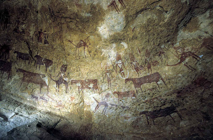 Figure 8. Shekitiye : Camels seem to have reached the Ennedi about 2000 years ago while iron production began at ca. 400 AD. Both innovations can be seen here with the armed camel riders obviously herding cattle.